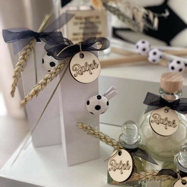 Graag houten label (zie foto) via link -> Houten naam labels | A kind of magic