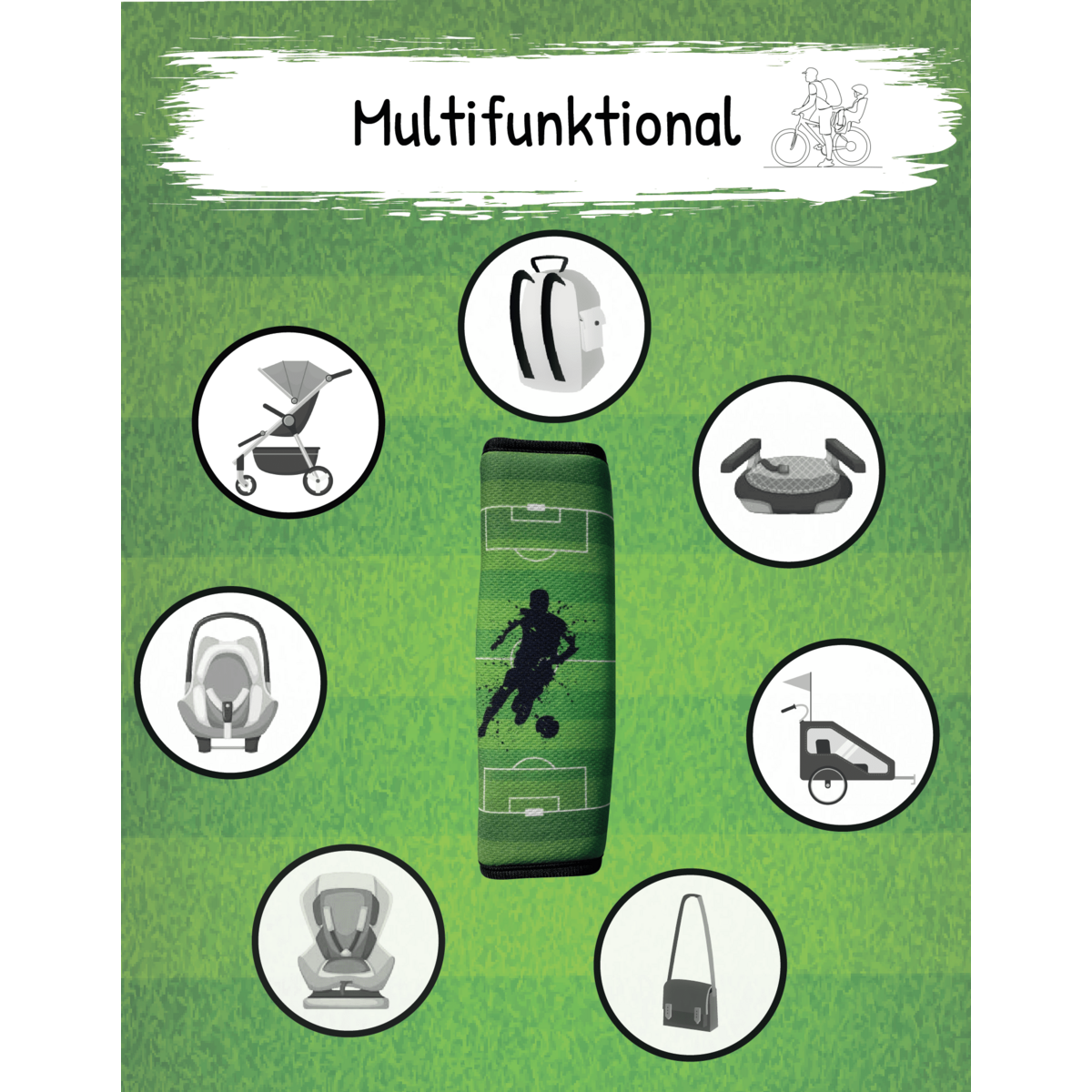 ► KINDERVRIENDELIJKE MOTIEVEN: je ontvangt een of twee autogordelbeschermers waarop een voetbalveld met een voetballer is gedrukt - een must-have voor alle kleine voetbalfans :) We bieden ook een vrijetijdssporttas aan die hierbij past motief.